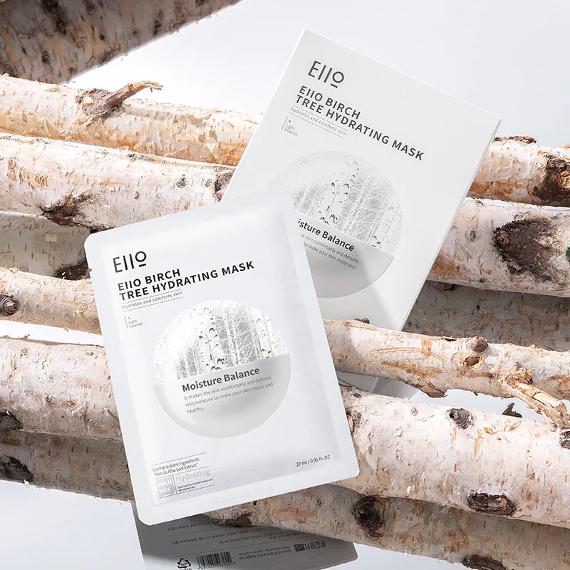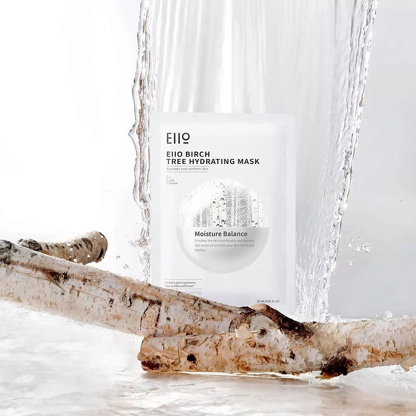 EIIO Birch tree — Drėkinamoji lakštinė kaukė su beržų sula, kuri aktyviai atkuria odos drėgmės balansą, minkština ir maitina, 27ml x 5.
